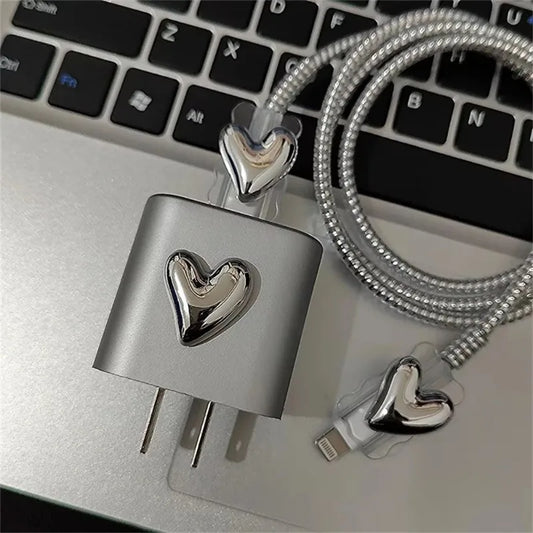Plating Crooked Silver Love Heart Case for Iphone 18W/20W Charger
