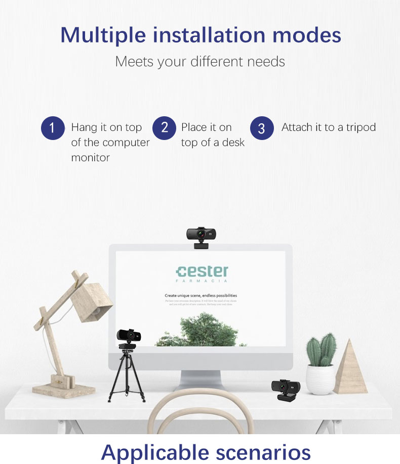 Multiple mounting options: Integrated clip and tripod thread for easy mounting on LCD monitors, laptops and tabletops.