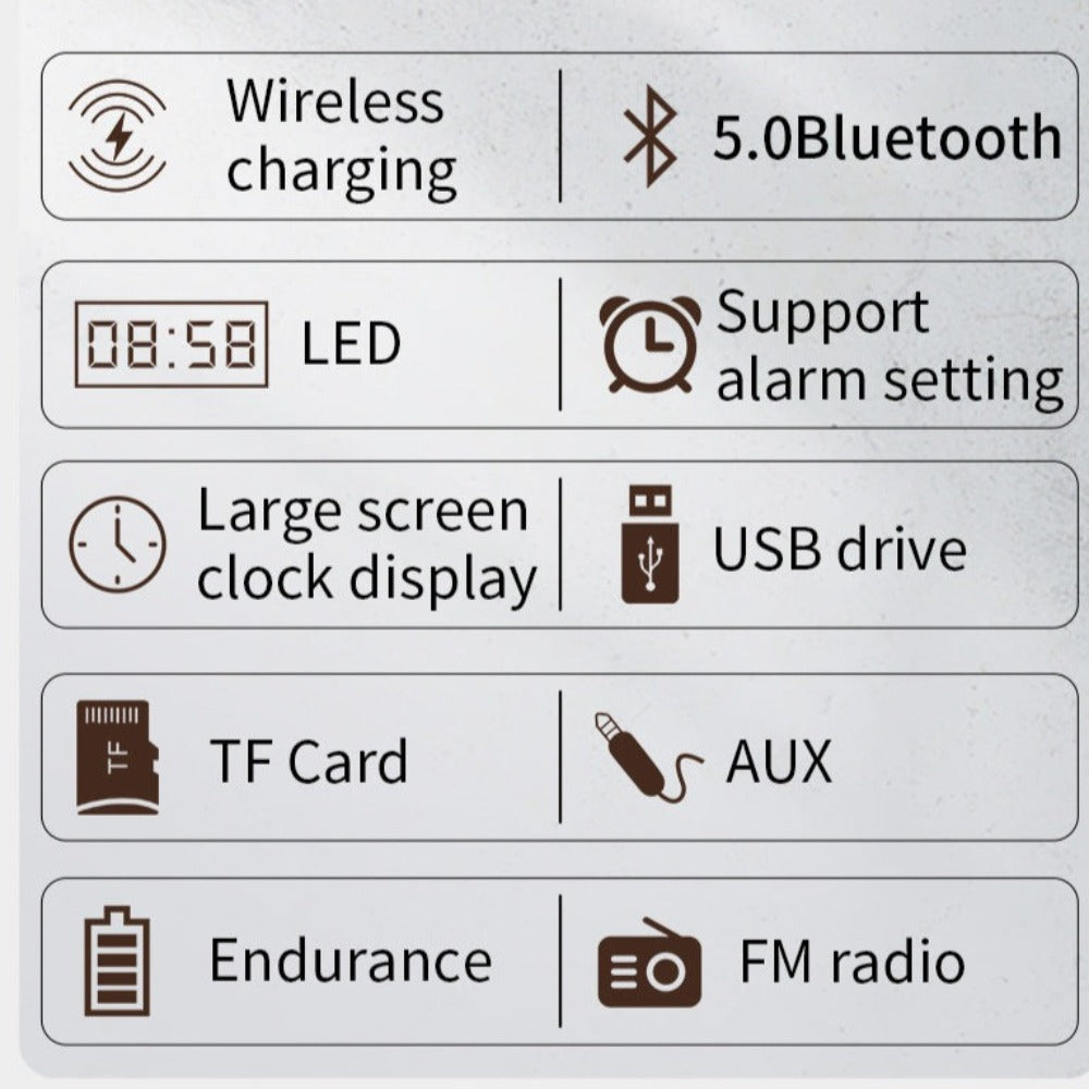 Wooden Retro Theme Wireless Speaker, Charger, & Alarm Clock